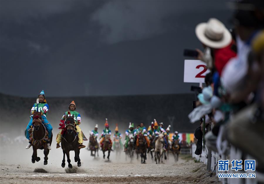 8月10日,騎手馳騁在當雄縣賽馬場。新華社記者普布扎西攝。