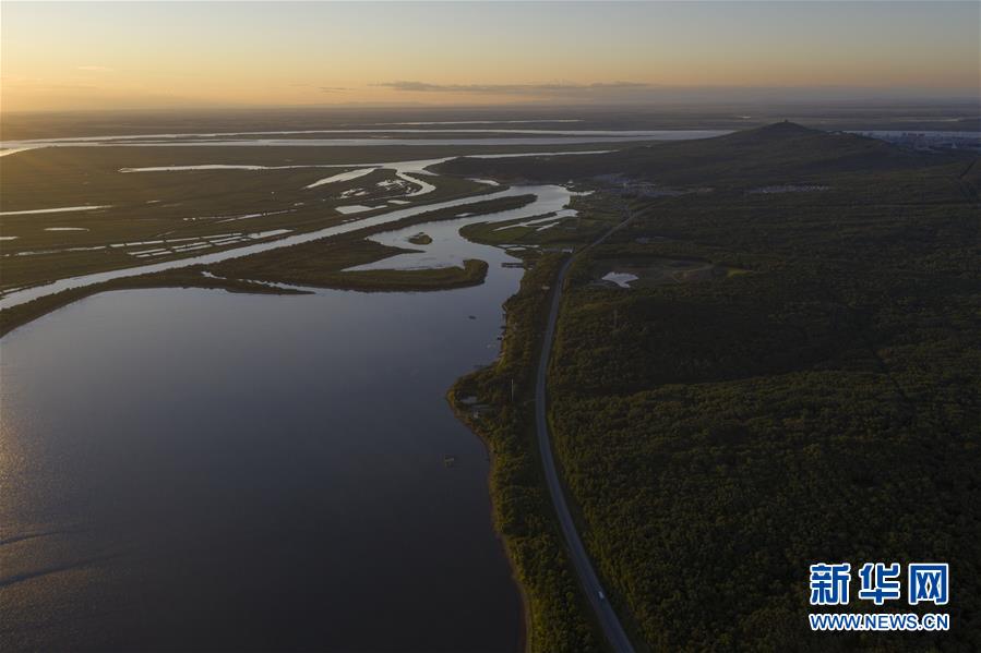 這是7月24日拍攝的華夏東極森林公園景象(無(wú)人機(jī)照片)。華夏東極森林公園臨近中俄邊界,公園包含南山、西山、蛇山等山體,覆蓋濃江河、大力加湖等水體,資源組合程度較高,是全國(guó)少有的“山、水、城、邊”各色風(fēng)光齊聚的森林公園。新華社記者謝劍飛攝。