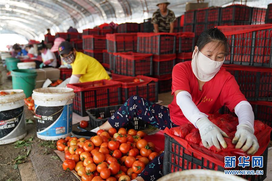 8月11日,在寧安市慶雨蔬菜專業(yè)合作社蔬菜產(chǎn)業(yè)園基地,工人把剛采摘下來的西紅柿打包裝箱。近年來,黑龍江省寧安市把設(shè)施蔬菜作為精準(zhǔn)扶貧的主導(dǎo)產(chǎn)業(yè)來抓,組織吸納貧困戶貸資加入產(chǎn)業(yè)合作社,帶動貧困戶脫貧增收。寧安市將全市500余戶貧困戶的小額信貸資金集中投放到寧安市慶雨蔬菜專業(yè)合作社,建設(shè)蔬菜產(chǎn)業(yè)園基地,在帶動貧困戶脫貧增收的同時,壯大合作社蔬菜產(chǎn)業(yè)。新華社記者王建威攝。