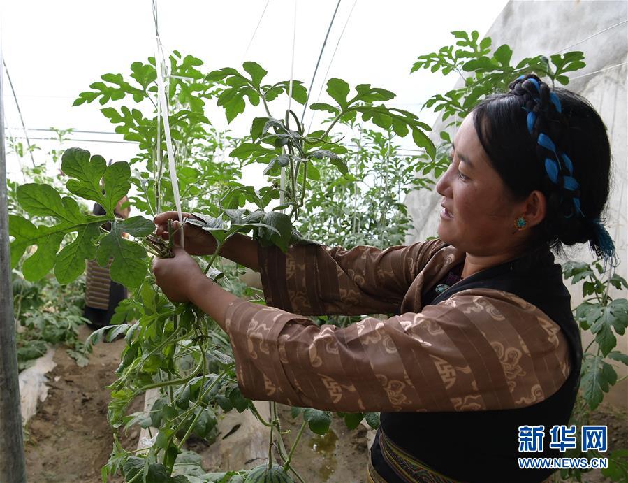 格桑旺姆姐妹家大棚內(nèi)的瓜秧上結(jié)出的小西瓜(8月2日攝)。新華社記者 李賀 攝