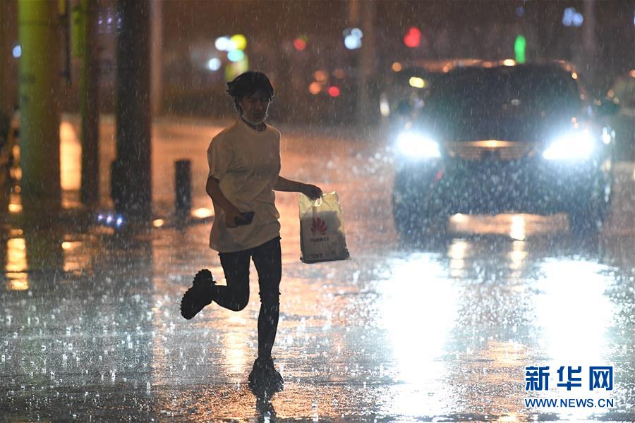 8月12日,在北京市朝陽(yáng)區(qū)一路段,行人冒雨出行。新華社記者 鞠煥宗 攝