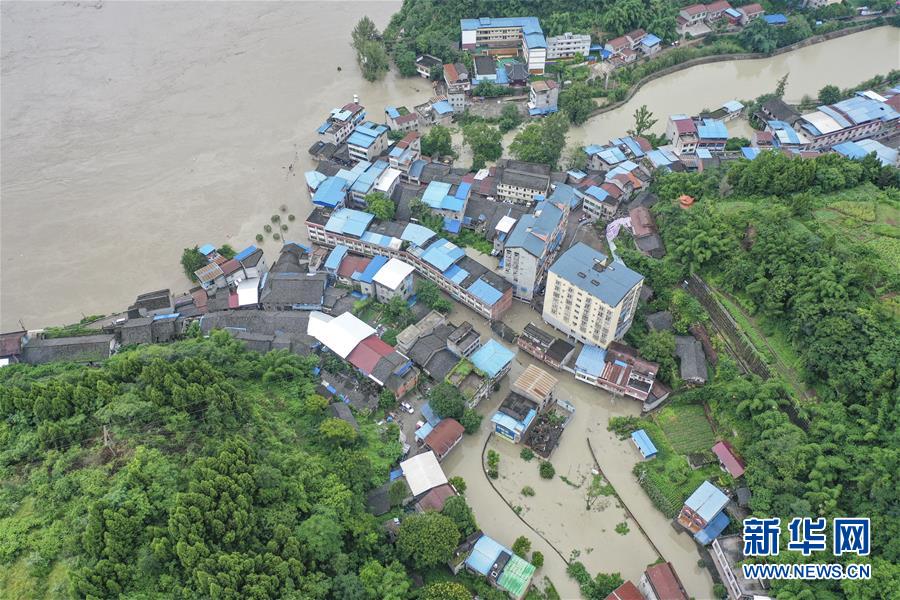 8月13日,在重慶市潼南區(qū)米心鎮(zhèn),涪江水位明顯上漲,洪水倒灌進場鎮(zhèn)(無人機照片)。受上游強降雨影響,嘉陵江近日出現(xiàn)明顯漲水過程,“嘉陵江2020年第1號洪水”已在嘉陵江支流涪江形成。重慶市正式啟動洪水防御Ⅱ級應急響應。據(jù)初步統(tǒng)計,截至13日16時30分,位于涪江畔的重慶市潼南區(qū),沿涪江7個鎮(zhèn)街不同程度受災,受災人數(shù)8209人,轉移人口6658人,農(nóng)作物受災面積5579畝。新華社記者黃偉攝