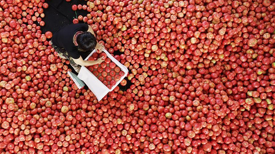 6月18日,在湖南省張家界市桑植縣,康華粽葉扶貧工廠(chǎng)的工人在搬運(yùn)粽葉。