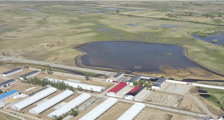 這是在新疆于田縣博斯塘濕地拍攝的于田稻田鵝業(yè)養(yǎng)殖有限公司種鵝場(chǎng)。