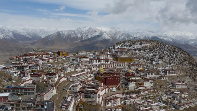 近日,拉薩周邊出現(xiàn)降雪天氣,坐落在達孜縣海拔3800米的旺波日山上的甘丹寺雪后景致迷人。