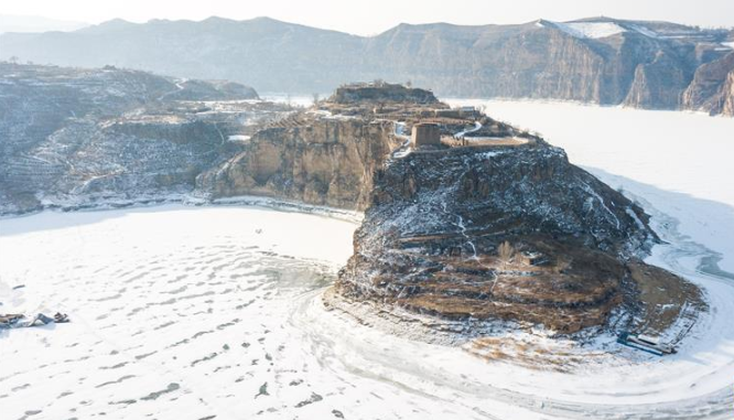 這是2月17日無人機拍攝的老牛灣雪景。黃河老牛灣位于山西省和內蒙古自治區(qū)交界處。