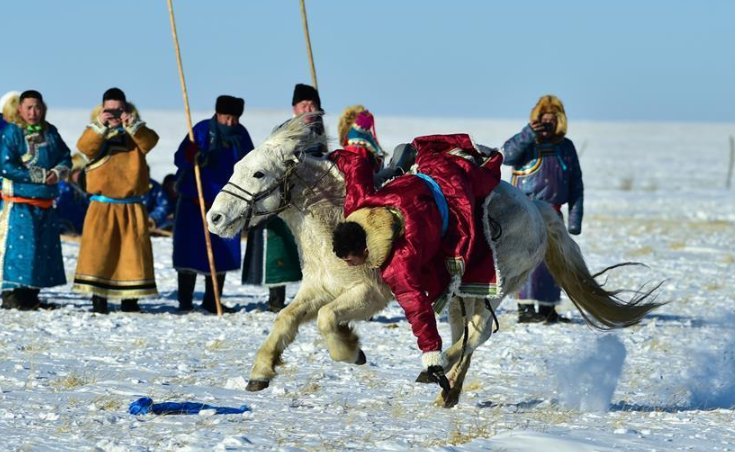 時(shí)下正值草原冬季旅游旺季,內(nèi)蒙古自治區(qū)西烏珠穆沁旗的牧民們?cè)谘┰弦徽股硎?,為游客展現(xiàn)獨(dú)特的民族風(fēng)情。