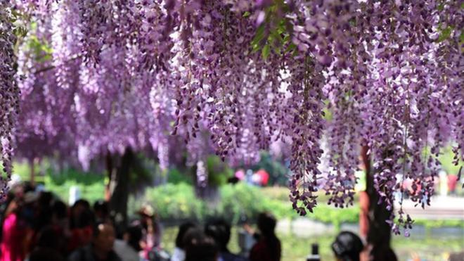 近日,上海嘉定紫藤園百余棵紫藤進入盛放期,吸引眾多游客前來觀賞。