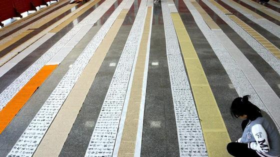書法學(xué)院收寒假作業(yè)如鋪“地毯”