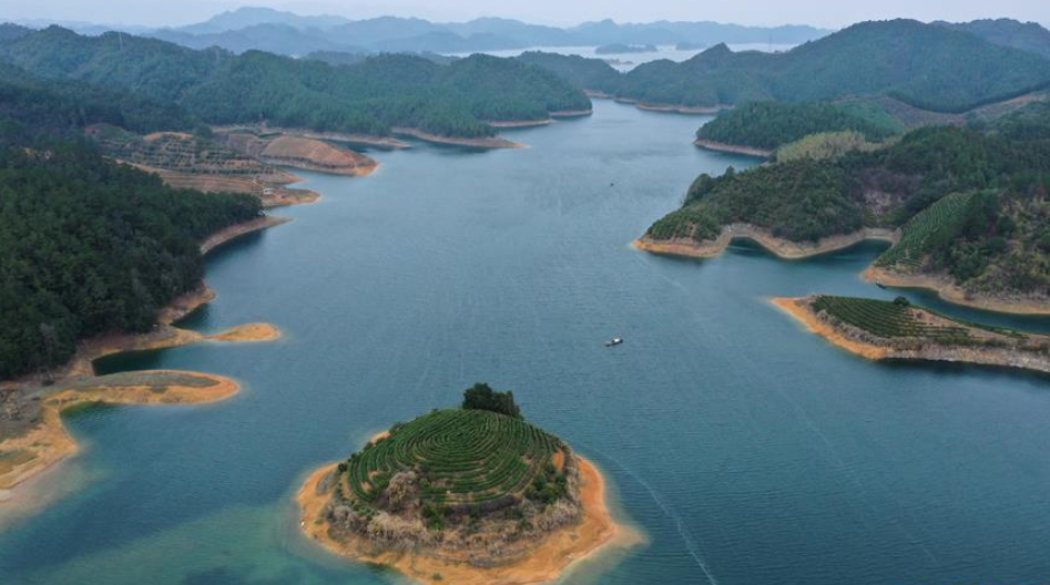 當日,浙江省淳安縣春茶全面開采,千島湖上星星點點的“島嶼茶園”浮在碧波之上,如夢似幻。