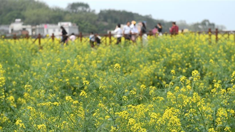 近日,廣西賓陽縣古辣鎮(zhèn)境內(nèi)不少鄉(xiāng)村菜花一片金黃,呈現(xiàn)一派春意融融的宜人景象。