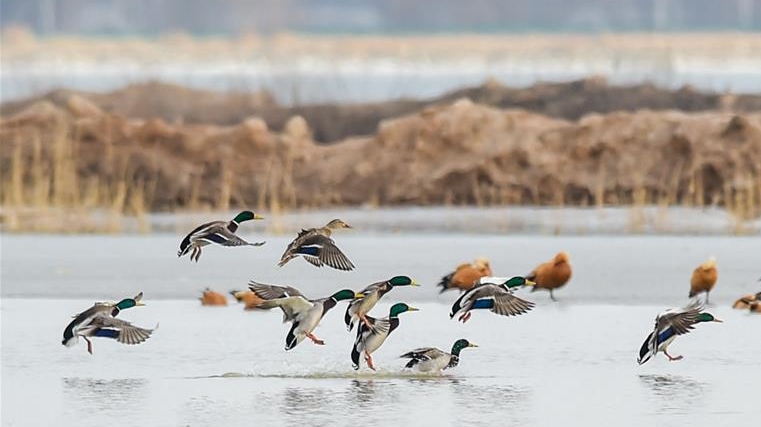近日,隨著天氣回暖,內(nèi)蒙古自治區(qū)準格爾旗大路鎮(zhèn)的黃河淺灘迎來大批候鳥。