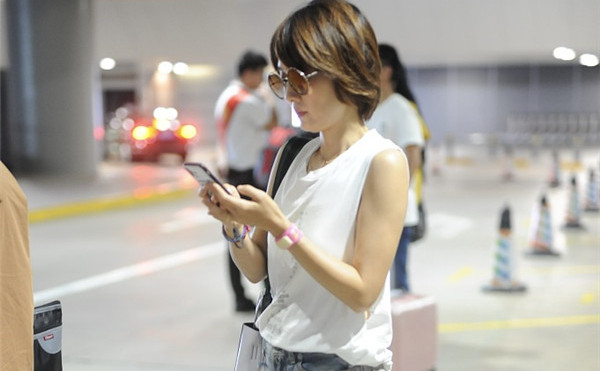 2018年8月20日,上海,馬伊琍現(xiàn)身機場,她身穿清爽白T,小蠻腰隱現(xiàn),搭配“乞丐風”破洞褲扮潮,一路低頭走狂刷手機。