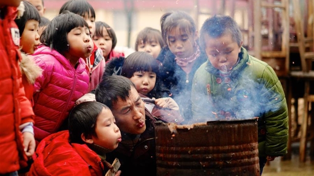 在江西省鷹潭市余江區(qū)春濤鎮(zhèn)黃泥小學,無論風霜雨雪,一個特殊的露天灶臺每天下課后準時點燃,溫暖著全校25位留守娃。