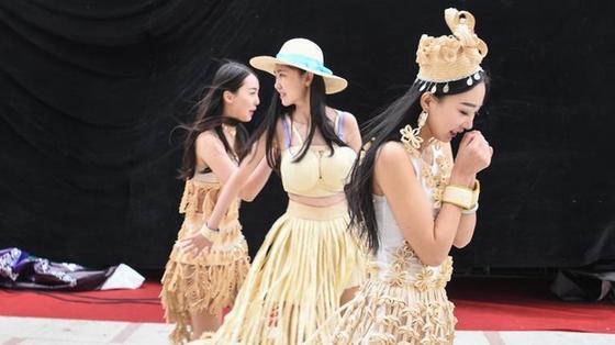 世界地球日 模特身穿草編服飾走秀