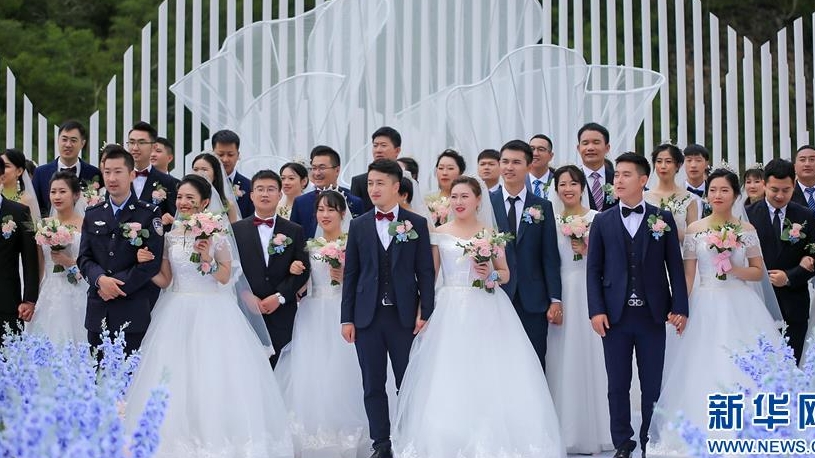 吉林長白山:“戰(zhàn)疫”新人舉行集體婚禮