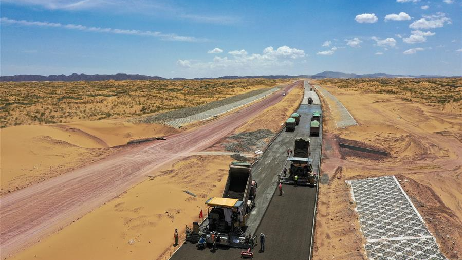 寧夏首條沙漠高速公路建設(shè)正酣