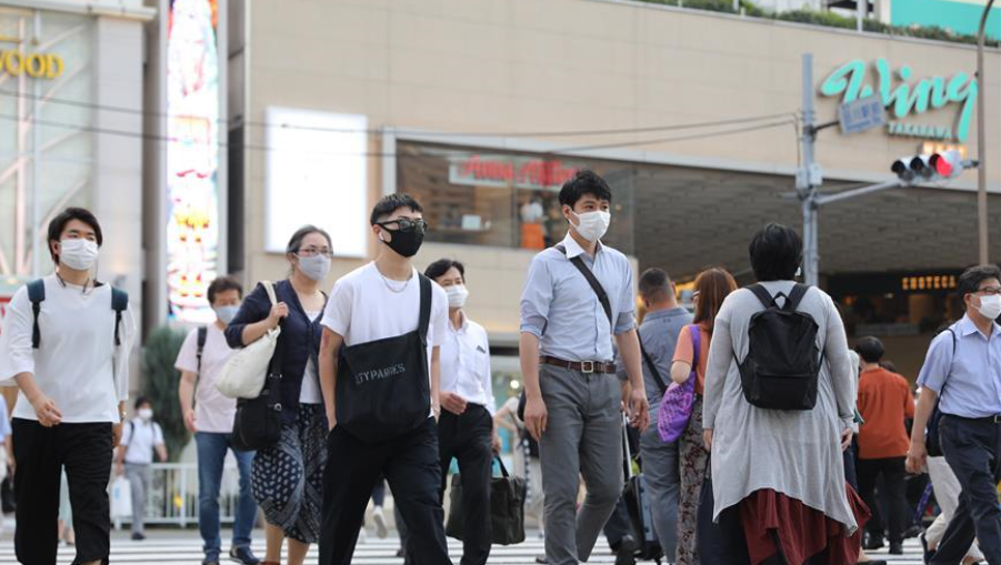 7月31日,在日本東京,人們戴口罩出行。