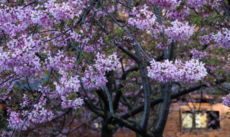 近日氣溫漸升,武漢東湖磨山櫻園里的櫻花漸次盛開,帶來春天的氣息。