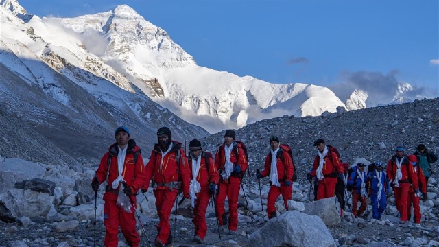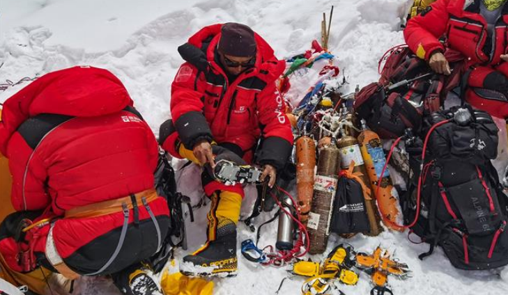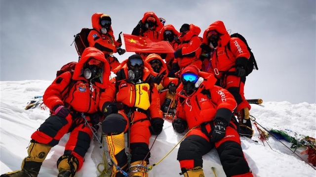 5月27日,2020珠峰高程測量登山隊成功登頂世界第一高峰珠穆朗瑪峰。他們將在峰頂豎立覘標,安裝GNSS天線,開展各項峰頂測量工作。