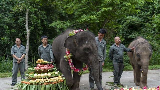 云南西雙版納:大象“羊妞”五歲啦!