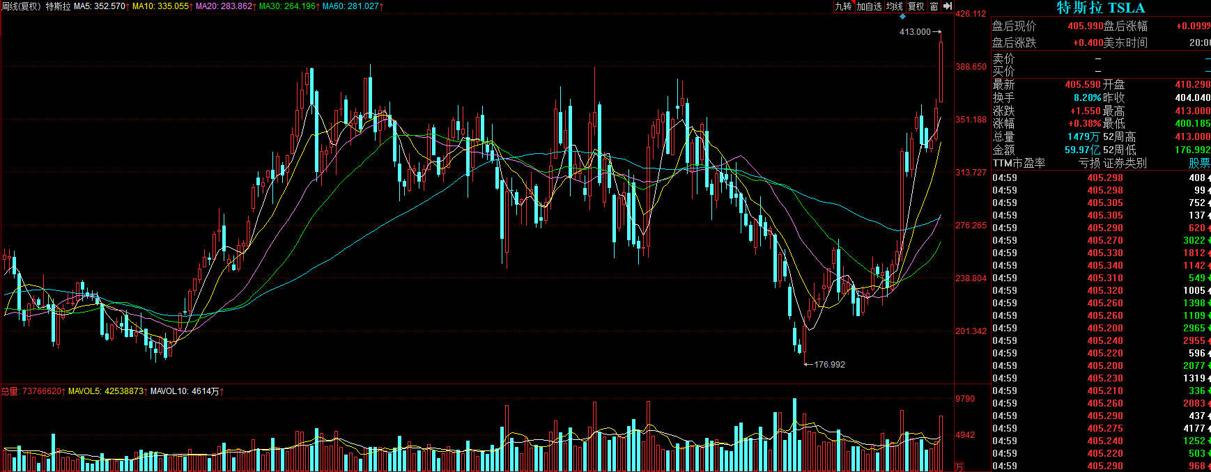 目前分析只需集中于這個(gè)五分鐘的上漲趨勢(shì)即可,上周如期做出了五分鐘上漲趨勢(shì)第二個(gè)中樞的雛形。前面幾天表現(xiàn)其實(shí)蠻超預(yù)期的,特別是科技股的逼空,A股似乎許久未見(jiàn)了。核心問(wèn)題出在周五,周五有兩個(gè)點(diǎn)顯示出當(dāng)下市場(chǎng)的外強(qiáng)中干,第一個(gè)在于周五早盤(pán)南京證券反包漲停時(shí),市場(chǎng)資金的失衡,明顯看出科技股與券商股兩臺(tái)“抽水機(jī)”從前幾天的互相配合變成了互相傷害;這一段跳水直接將圖形破壞,強(qiáng)度大的新高背馳可以說(shuō)已經(jīng)沒(méi)有了,那下午上拉無(wú)力后的跳水也就在情理之中。