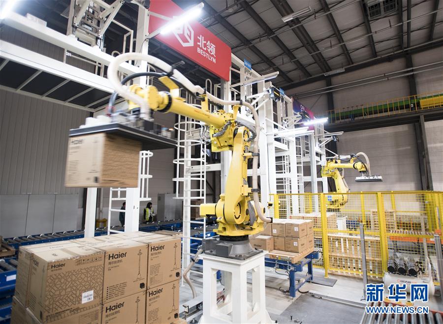 ??? 近日,在菜鳥(niǎo)網(wǎng)絡(luò)武漢黃陂物流倉(cāng)內(nèi),一組機(jī)械臂在進(jìn)行搬運(yùn)作業(yè)。近日,菜鳥(niǎo)網(wǎng)絡(luò)在湖北武漢黃陂物流倉(cāng)庫(kù)啟用智能機(jī)械臂來(lái)搬運(yùn)商品。據(jù)介紹,每組機(jī)械臂一個(gè)小時(shí)能搬運(yùn)1000件商品,可以24小時(shí)不間斷作業(yè)。這些機(jī)械臂的投入,有助于緩解高峰期貨物處理壓力,提高發(fā)貨速度,被工程師親切地稱為“麒麟臂”。新華社記者肖藝九攝