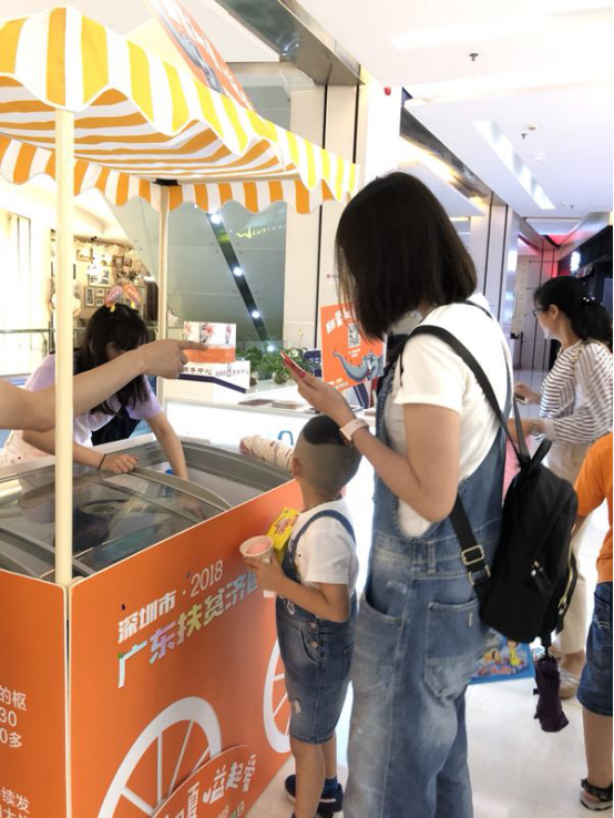 6月23日,“甜蜜初夏 慈善一直在”深圳10大地標(biāo)冰激凌義賣活動(dòng)在在福田星河COCO Park啟動(dòng)?,F(xiàn)場(chǎng),很多逛商場(chǎng)的市民掃碼購(gòu)買冰淇淋,為扶貧濟(jì)困活動(dòng)捐款。特別讓志愿者感觸的是,不少家長(zhǎng)帶著小朋友路過(guò),看到是給貧困人們貢獻(xiàn)愛(ài)心,紛紛參與進(jìn)來(lái)要買冰激凌。