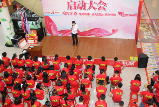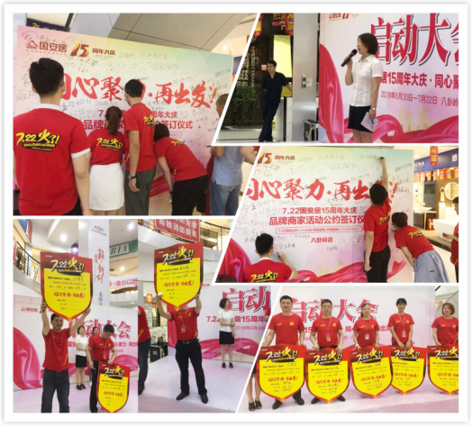 7月3日下午,紅色的T恤覆蓋了國安居各店商場,“7.22國安居15周年大慶”啟動大會在國安居各店正式落下帷幕。為確保全員工作執(zhí)行到位,運(yùn)行流暢,國安居各店店總及各店策劃負(fù)責(zé)人,先后做了本次大慶企劃活動及推廣執(zhí)行方案的細(xì)致說明,各店參會的商戶老板、銷售精英及國安居員工對此次活動的推廣形式與方向感到更加明確了,對于此次大慶活動的開展更是充滿了期待與信心。