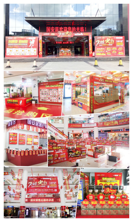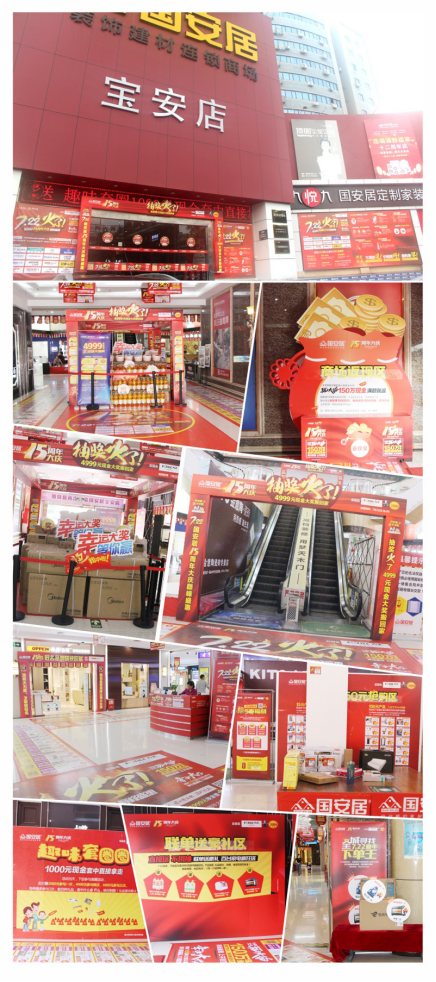 如今,國安居15周年大慶的消息已傳遍鵬鵝兩城。11重優(yōu)惠成為眾多裝修業(yè)主的福音,目前,各分店全部張燈結彩煥然一新,高掛巨幅折扣牌,各環(huán)節(jié)的獎品堆積如山,戶外廣告鋪天蓋地,有圖有真相。