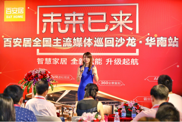 百安居總部市場部負(fù)責(zé)人沈鳳錦女士帶領(lǐng)華南主流媒體參觀門店