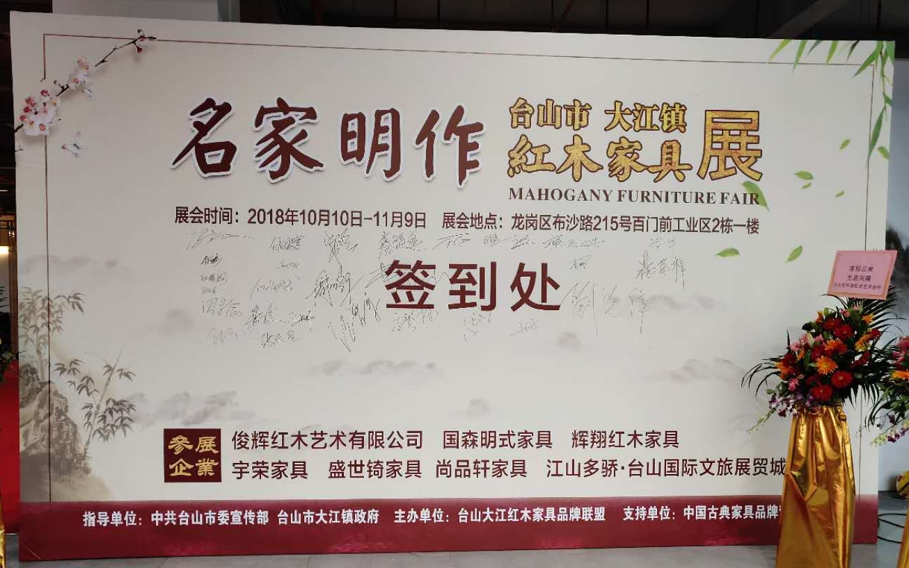據(jù)了解,此次活動參展企業(yè)有:俊輝紅木藝術(shù)有限公司,國森明式家具,輝翔紅木家具,宇榮家具,盛世锜家具,尚品軒家具,江山多驕·臺山國際文旅展貿(mào)城,活動時間:2018年10月10日-11月09日。