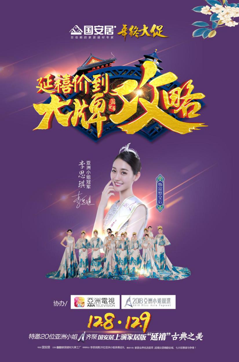作為2018年收官之作,國安居非常重視此次年終盛典,力求將本次盛典做大做好,以回饋廣大新老顧客的長期支持與厚愛。為此,國安居本次特邀2016亞姐冠軍李思琪攜手20位2018亞洲小姐候選佳麗親臨國安居親善巡禮,集智慧與美麗于一身的亞姐佳麗帶您領(lǐng)略“延禧攻略”古典之美。為廣大業(yè)主獻上一場美輪美奐的古典文化視覺盛宴。