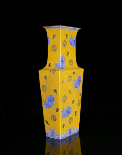 清·光緒黃釉藍(lán)料彩福壽紋方瓶成交價208000元