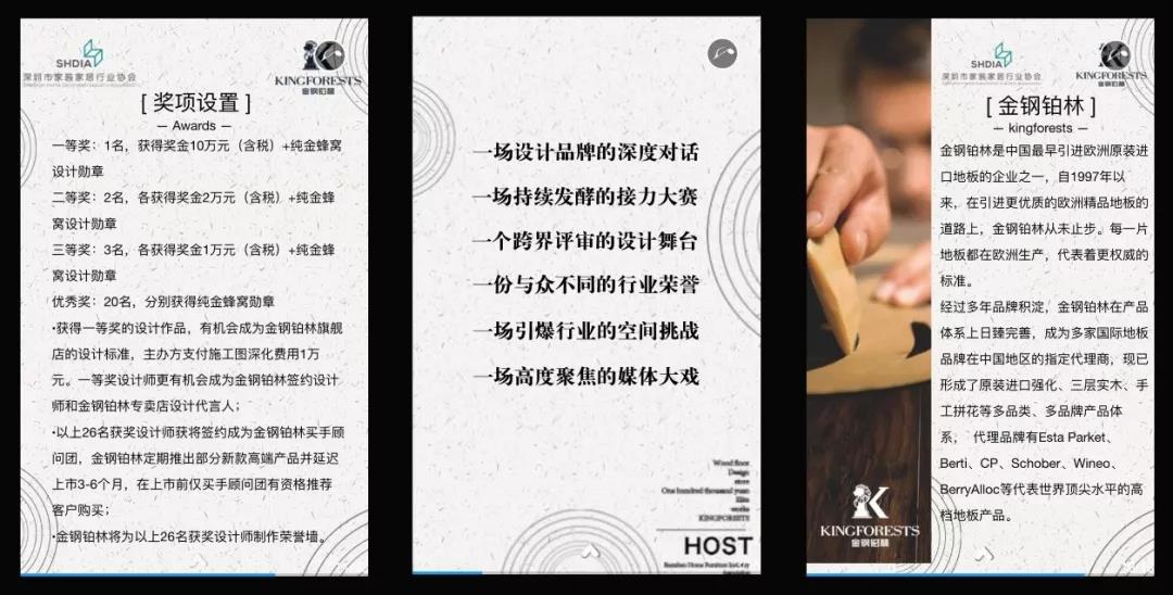 行業(yè)協(xié)會(huì)聯(lián)手中國最早引進(jìn)歐洲原裝進(jìn)口的地板企業(yè)金鋼鉑林,利用其在寶能第一空間的旗艦店即將啟幕的機(jī)會(huì),設(shè)置十萬元的現(xiàn)金大獎(jiǎng)來舉辦賽事,就是要推動(dòng)行業(yè)設(shè)計(jì)力量的縱深發(fā)展。