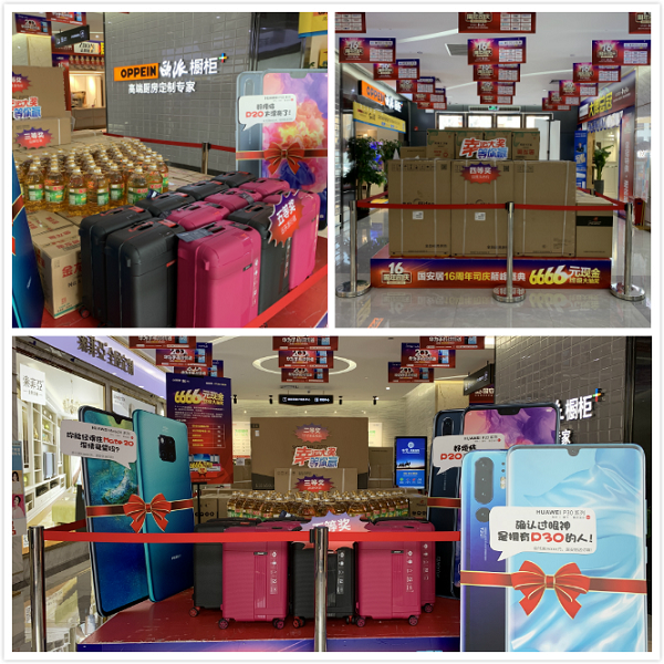 據(jù)了解,這場從6月14日持續(xù)至30日的司慶活動,國安居為業(yè)主朋友們準(zhǔn)備了六大鉅惠:1、司慶重磅獻(xiàn)豪禮,七店就送200臺華為手機(jī)!6.30當(dāng)天累計(jì)訂單(可多個品牌下定)實(shí)付滿15000元送遠(yuǎn)東旅行箱一個,實(shí)付滿80000元送華為P20一臺,實(shí)付滿150000元送華為mate20一臺,實(shí)付滿250000元送華為P30手機(jī)一臺;2、6月30日前,提前在國安居店面及微信16元搶購《司慶超抵卡》,活動當(dāng)天簽到即可尊享6重超值豪禮;3、6月14日-6月29日活動期間,顧客買單后微信分享活動,即可領(lǐng)取16-666元隨機(jī)金額現(xiàn)金紅包一個,5000個現(xiàn)金紅包等您來瓜分!還有機(jī)會贏取終極大獎華為P30哦;4、國安居16周年司慶公益義賣,驚現(xiàn)160元馬桶、160元爐灶、16元花灑、16元鞋柜……買到就是賺到!沒錯,就是這么任性;5、160萬現(xiàn)金聯(lián)單就返,6月30日活動當(dāng)天,在國安居下定3個品牌以上(每個品牌實(shí)付滿3000元),即可參與聯(lián)單返現(xiàn)活動,多買多返,上不封頂;6、終極抽6666元現(xiàn)金大獎,6.15-6.30活動期間,購物實(shí)付金額滿2000元可領(lǐng)取抽獎券一張,滿4000元領(lǐng)取兩張,以此類推。