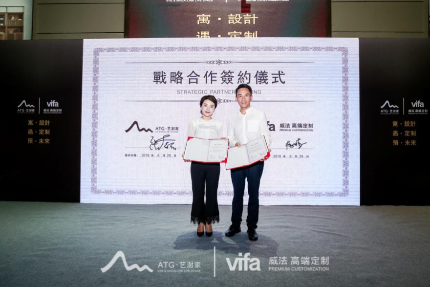 雙方代表簽約(左:ATG·藝澍家CEO張富麗右:vifa威法董事長(zhǎng)楊煉)