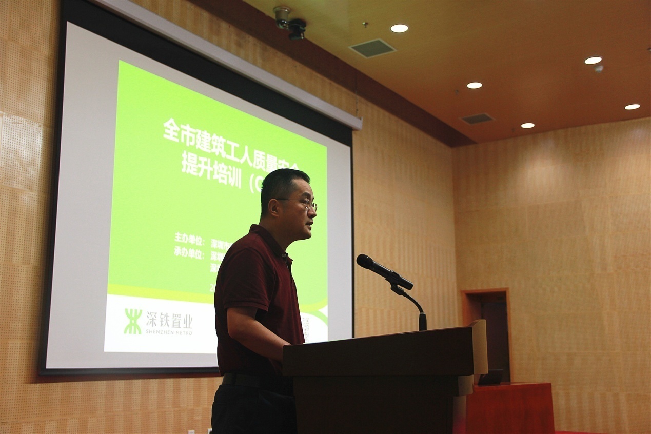 深圳市住房和建設(shè)局建筑市場和招標(biāo)投標(biāo)監(jiān)管處副處長董亮首先對一線工人表示親切的慰問,并對深圳地鐵置業(yè)集團(tuán)積極響應(yīng)政府號召,扎實(shí)落實(shí)工人安全質(zhì)量培訓(xùn)工作表示肯定。本次培訓(xùn)是市住建局建筑工人質(zhì)量安全培訓(xùn)提升工作方案的重要組成部分,接下來將在全市全面推行A、B、C、D、E五類培訓(xùn)。由政府、企業(yè)、協(xié)會、培訓(xùn)機(jī)構(gòu)四方力量共同攜手推進(jìn)崗前崗后、場內(nèi)場外、線上線下培訓(xùn)教育工作。今后,未經(jīng)過系統(tǒng)教育培訓(xùn)的工人將禁止進(jìn)入深圳市建筑市場。