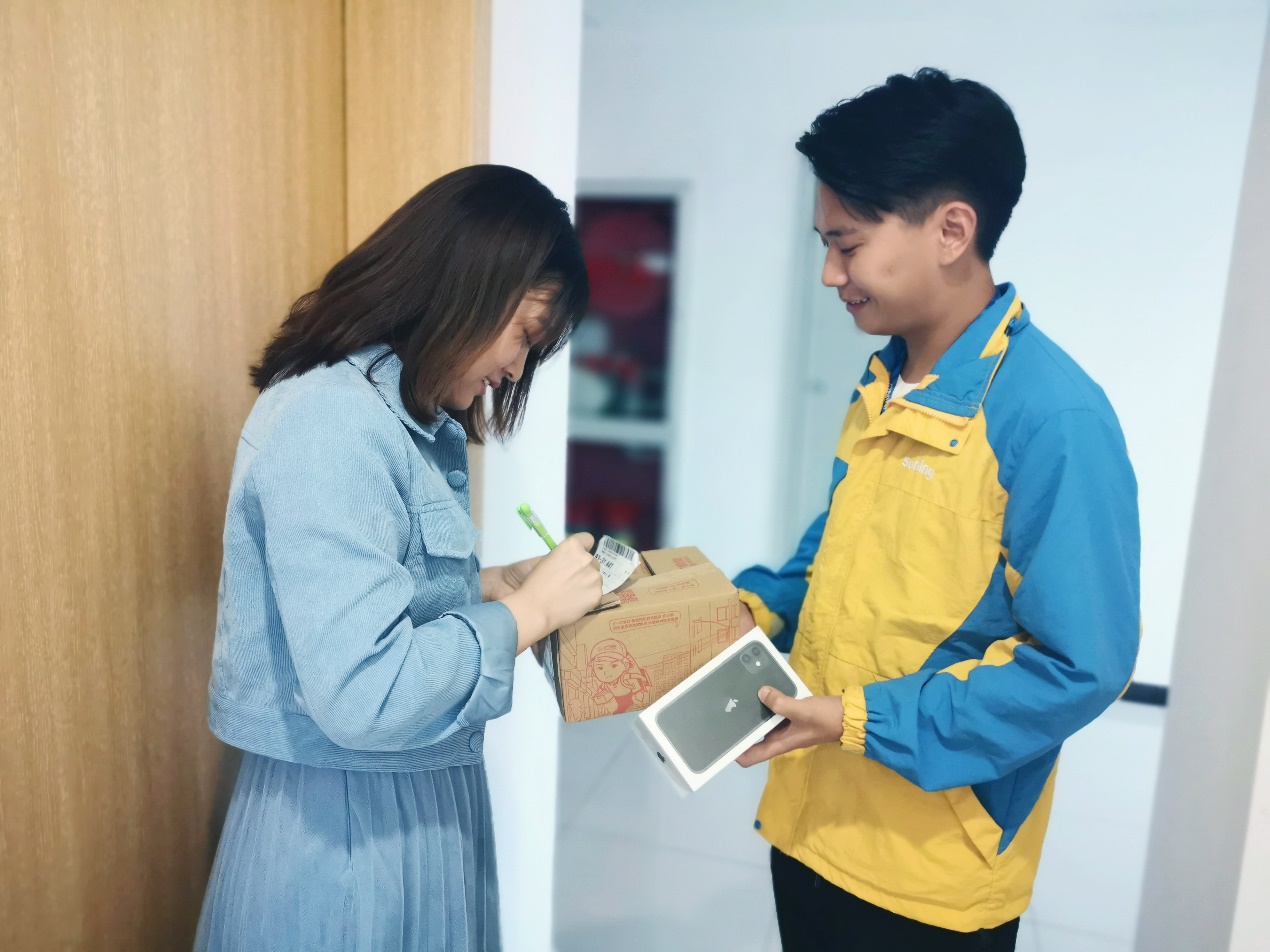 與此同時(shí),在蘇寧易購(gòu)線上渠道,全國(guó)各地的果粉均在開(kāi)售第一時(shí)間進(jìn)行搶購(gòu),石家莊的李女士,8點(diǎn)整在蘇寧易購(gòu)搶先下單購(gòu)買(mǎi) iPhone11新機(jī),從下單到收貨入手新機(jī),僅用時(shí)12分鐘,蘇寧物流火箭哥飛速送達(dá),完成全國(guó)線上購(gòu)買(mǎi)的 iPhone11第一單。