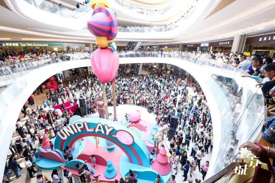 另一個是壹方城自行設(shè)計的6大自有IP——UNIPLAY家族,6個IP形象萌態(tài)可掬,受到了消費者的普遍認可。壹方城還通過制作公仔、帆布袋等實用IP周邊,以及與國際一線化妝品LANC?ME以及喜茶、潮宏基、來電、我是酸奶君等品牌聯(lián)名,巧妙加深與消費者的情感鏈接,成就獨特的壹方記憶。