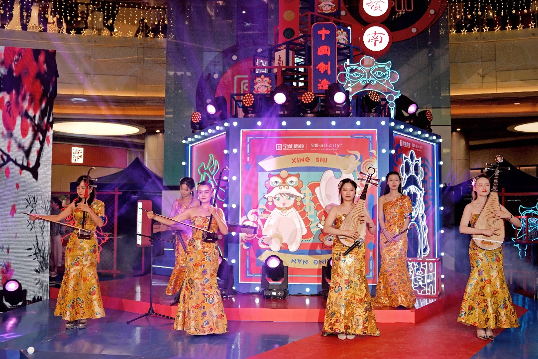 慶典當(dāng)天,豐富多彩的異業(yè)活動(dòng)貫穿全場,紅包雨搖一搖的現(xiàn)場互動(dòng)小游戲?yàn)閼c典帶來了一波又一波歡呼;街舞串燒、國潮T臺(tái)大秀、樂隊(duì)演奏、漢服快閃秀、近景魔術(shù)等精彩表演更是將現(xiàn)場氣氛不斷推向高潮。作為今年周年慶的主打形象,“國潮 IP”——南獅霸氣亮相,呆萌與喜慶的形象一出場便引爆現(xiàn)場,成為全場焦點(diǎn)。富有中國傳統(tǒng)文化內(nèi)涵的南獅與西方潮流電音的巧妙結(jié)合,碰撞出新穎而奇妙的火花,也讓在場觀眾體驗(yàn)到了一場耳目一新的視聽盛宴。