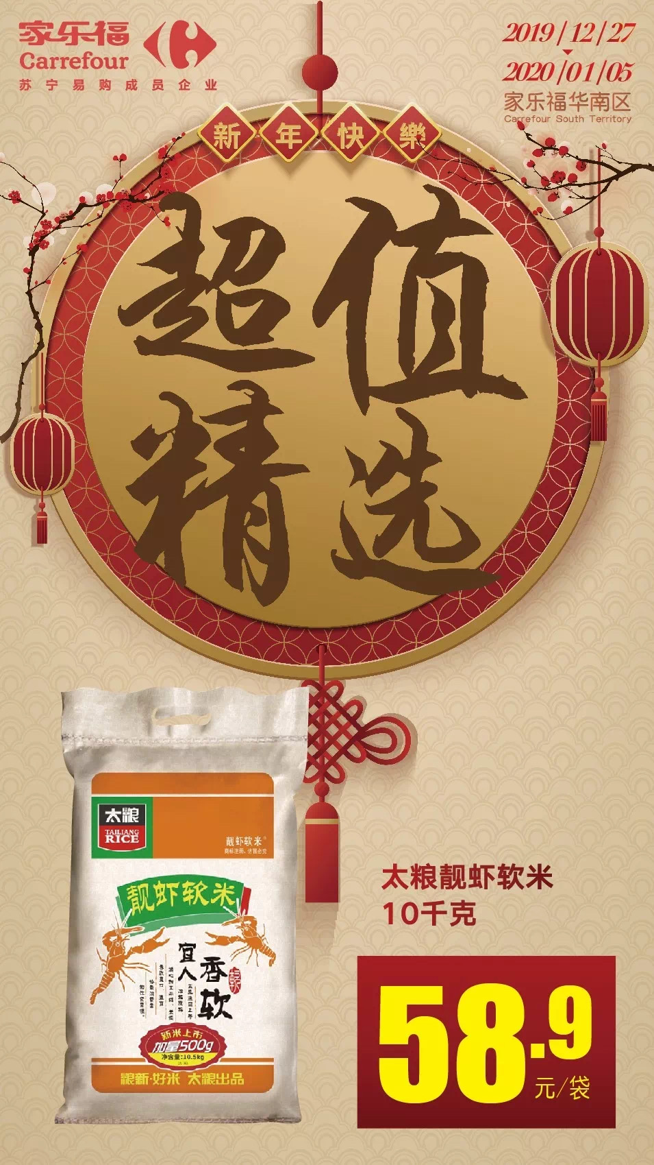 深圳新聞網(wǎng)2019年12月27日訊 俗話(huà)說(shuō)“民以食為天”。一碗好米飯,能頂半邊天。要過(guò)年了,家里總得備點(diǎn)好米呀!12月27日至1月5日,家樂(lè)福華南區(qū)特推太糧靚蝦軟米,驚爆價(jià)僅需58.9元/袋。吃貨們,囤起!