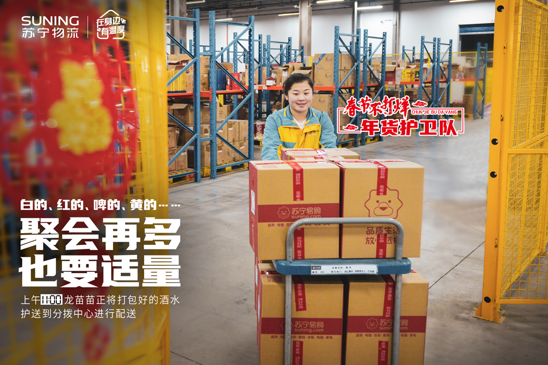 日前,蘇寧官宣春節(jié)物流不打烊,蘇寧物流倉火箭哥的一天同步曝光,名副其實“年貨護衛(wèi)隊”。