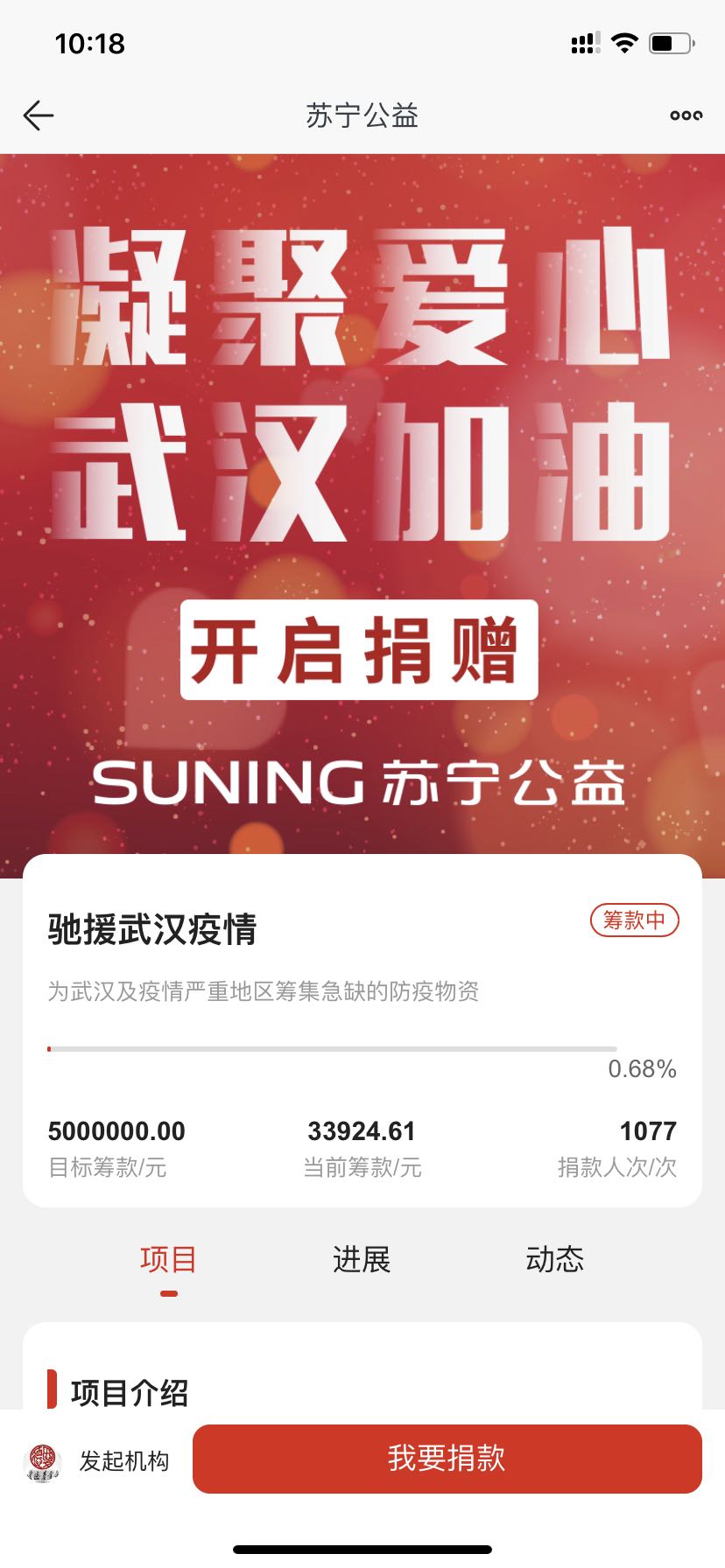 登錄蘇寧易購App首頁就可以進入公益項目捐贈頁面