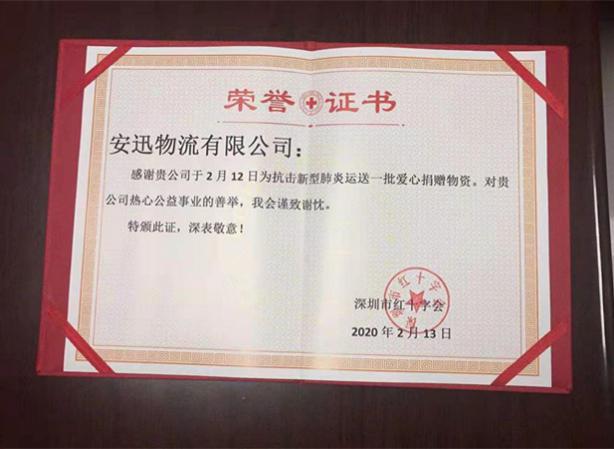 當(dāng)?shù)絻商幘柚攸c收集好物資后,國美物流車輛到達(dá)深圳市疾控中心已是下午兩點多,一路上兩人水米未進,盡力保證捐贈物資的及時到位。深圳市紅十字會為國美安迅物流發(fā)來了榮譽證書,對他們及時運送愛心捐贈物資的善舉表示感謝。