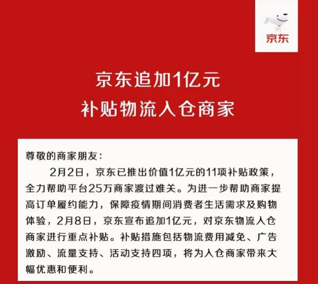京東追加1億元補貼物流入倉商家