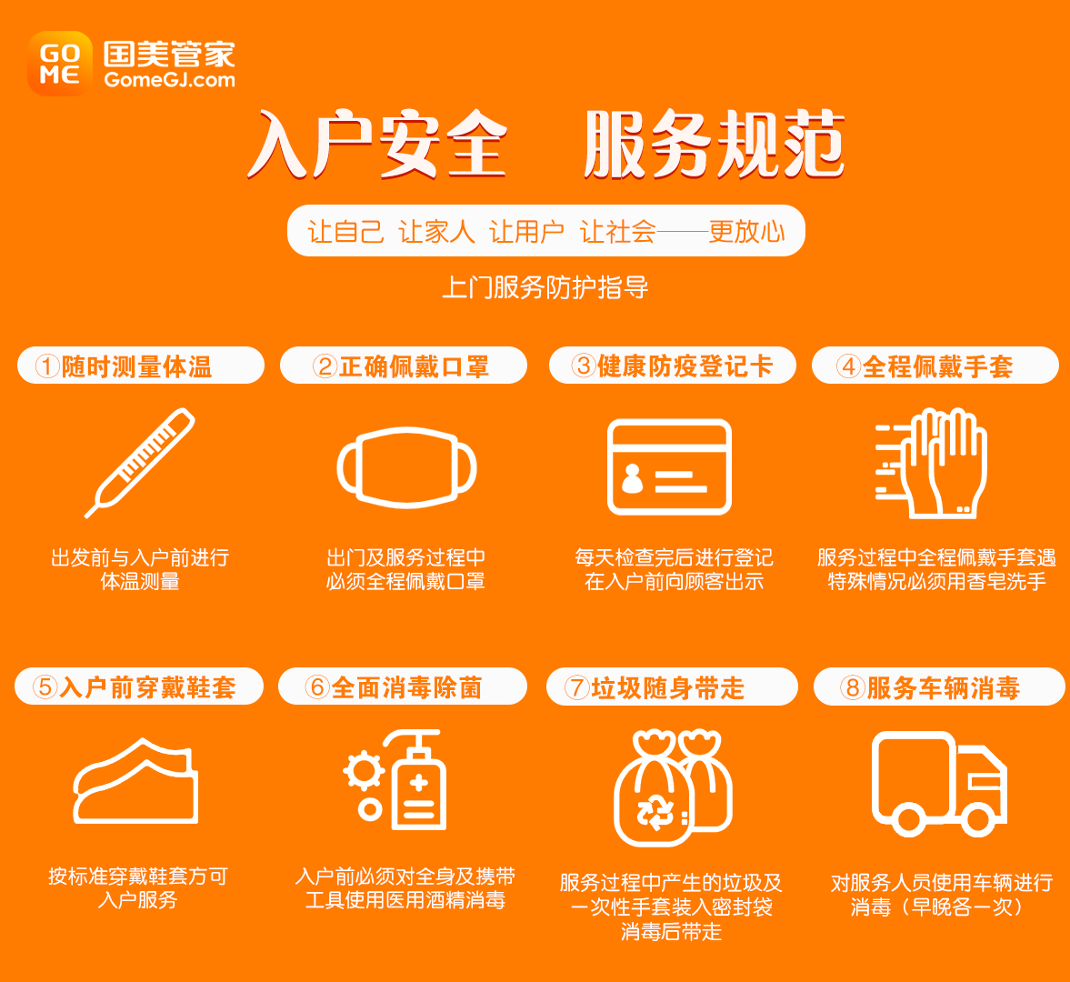 第二天上午,國(guó)美管家的售后服務(wù)工程師唐勝(化名)在小區(qū)測(cè)溫登記后按響了李女士家的門(mén)鈴,向李女士出示了“健康防疫登記卡”,拿出體溫槍對(duì)準(zhǔn)手腕、額頭分別測(cè)溫,均顯示正常。在門(mén)外唐勝還更換了新的口罩、佩戴防護(hù)手套、穿戴好鞋套,在自身全面消毒后才進(jìn)入李女士家中。
