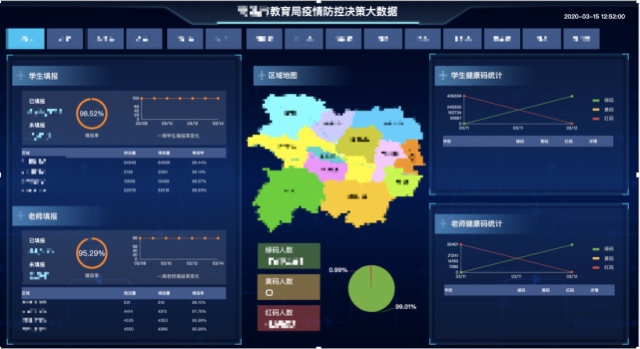同時(shí),企業(yè)微信的管理后臺具有多維數(shù)據(jù)展示、導(dǎo)出和防控?cái)?shù)據(jù)動態(tài)可視化展示的功能,可實(shí)時(shí)監(jiān)測防控?cái)?shù)據(jù),將數(shù)據(jù)進(jìn)行分類匯總,管理者只需一鍵導(dǎo)出統(tǒng)計(jì)報(bào)表,就能全面掌握區(qū)域師生健康狀況,確認(rèn)返校師生員工名單,全面統(tǒng)籌安排后續(xù)教學(xué)工作。