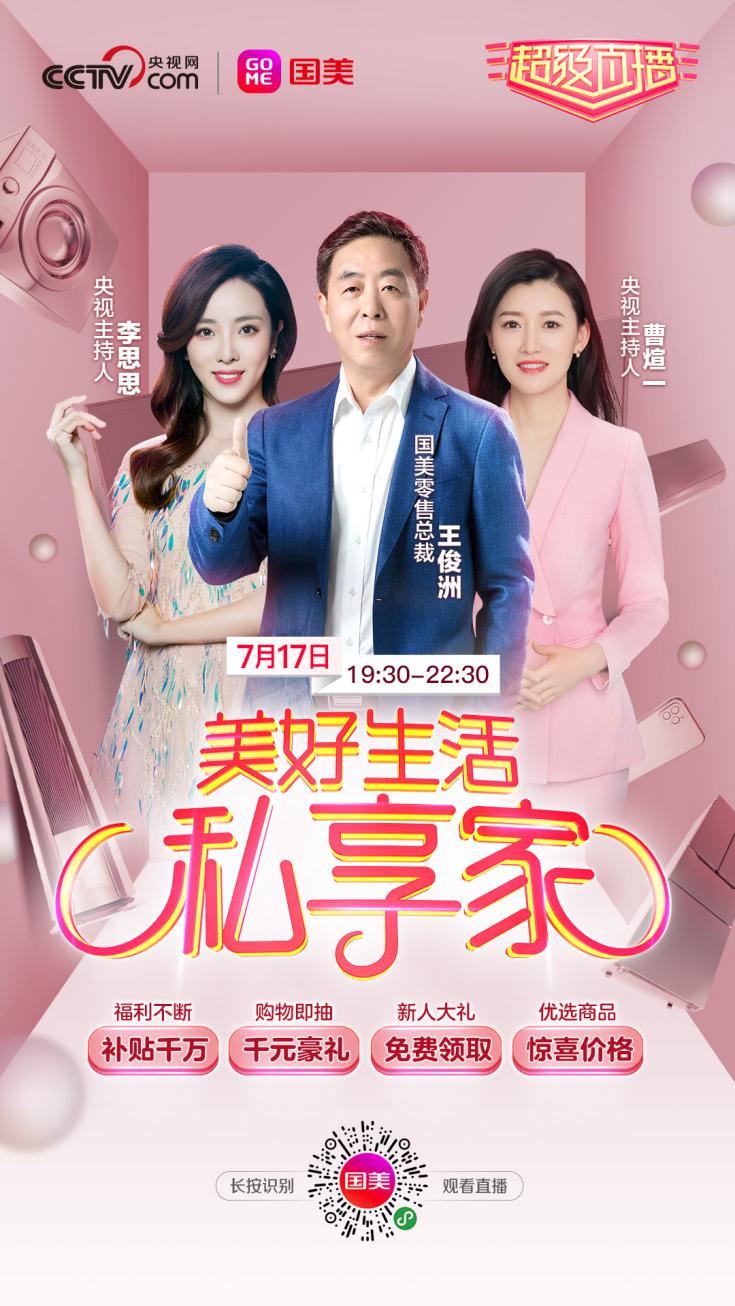 據(jù)了解,7月17日晚19:30,國美將再度攜手央視網(wǎng),共同打造以“美好生活私享家”為主題的超級直播。國美零售網(wǎng)紅總裁王俊洲再現(xiàn)江湖,央視主持人李思思、曹煊一助陣“砍價(jià)”。此外,“國美小虎”也將帶著多款家電和日用熱銷商品現(xiàn)身直播間,為消費(fèi)者帶來更多優(yōu)惠。用戶可通過央視網(wǎng)抖音號、國美微信小程序、拼多多國美官方旗艦店、京東國美官方旗艦店實(shí)時(shí)在線觀看。