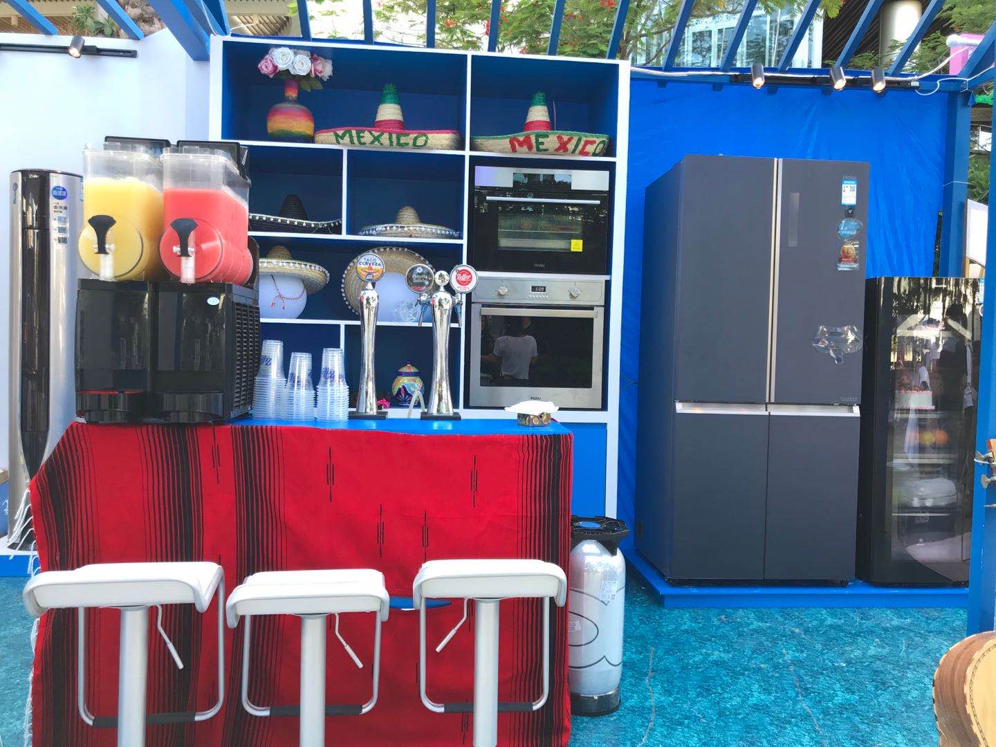 來到水吧,你可以看見冰箱、冰吧裝滿琳瑯滿目的酒水,來到現(xiàn)場的人們可以盲選3類基礎酒,自己或請調(diào)酒師為你調(diào)配一杯今天的lucky drink。冰箱里填充了滿滿的食材、水果,想吃各類冰沙都可以現(xiàn)場制作體驗。來到廚電區(qū)域可以品嘗由海爾烤箱現(xiàn)場制作的小餅干,焦香酥脆讓你流連忘返。